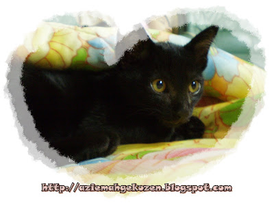 Mak dia aku panggil Cik Tam sebab hitam macam tue and anak dia aku panggil Black sebab all-black...haha...sama jer maksud hitam dengan black kan? kan? ape la tak kreatifnya aku bagi nama tapi aku tak suka nak bagi nama orang kat kucing...takkan nak panggil abdul ke apa kan? haha...nama buah lagi la pelik...